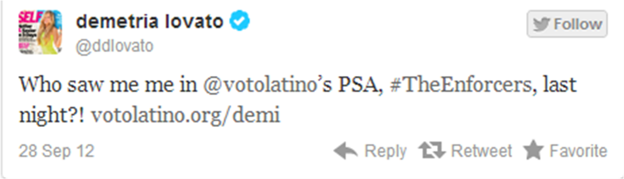 @ddlovato: “Quem me viu no PSA, #TheEnforcers, do @votolatino, ontem à noite?!”